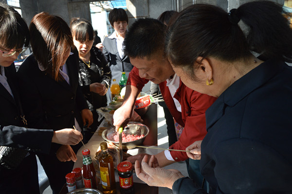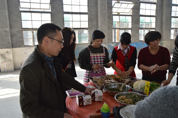 這次活動(dòng)提倡女工人人動(dòng)手,共同參與“煮”婦活動(dòng),包五彩餃子。早上9點(diǎn)不到,場(chǎng)地內(nèi)已異常熱鬧,按預(yù)定的分組形式,“煮”婦們齊動(dòng)手,和面、穿烤串、包餃子,很快顏色多樣、形狀各異的餃子也紛紛的在大家眼前呈現(xiàn),“你綠色的好看”、“你的餃子做的圓嘟嘟的真可愛”、“你教我怎么搟皮吧”、“這個(gè)餃子大的”…… 你到我組看一看,我到你組瞅一瞅,大家互相探討包餃子的技術(shù),互相嬉鬧,歡笑聲此起彼伏。