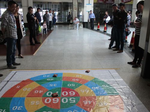 今天(14日)下午14:00時,麗汽集團第六屆職工運動會男、女混合投飛鏢、投沙包比賽繼續(xù)在西站賽區(qū)開賽,西站片區(qū)的員工積極踴躍參賽。在投沙包比賽現(xiàn)場尤為熱鬧,喝彩聲不斷,每當參賽選手投中高分時,觀眾們都熱情的喝彩助威。已參賽的選手和將要上場的選手們在現(xiàn)場也都沒有閑著,相互交流投擲經(jīng)驗,為投出更好的成績做準備。