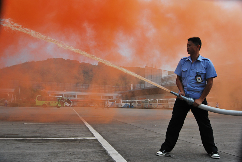 演練項目包括遇火情車輛疏散模擬演練、明火水槍滅火、明火滅火器滅火三個項目。通過應(yīng)急演練,提高了義務(wù)消防隊員在遇火情時的實戰(zhàn)能力。