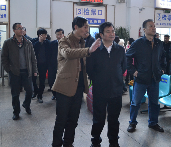 2月13日上午,麗水市市長(zhǎng)黃志平及市各有關(guān)單位領(lǐng)導(dǎo)在集團(tuán)公司董事長(zhǎng)葉茂和東站經(jīng)理江小華的陪同下,對(duì)東站的春運(yùn)安全工作進(jìn)行了視察。