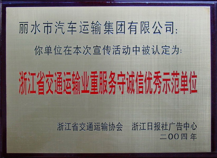 2004年浙江省交通運輸業(yè)重服務守誠信優(yōu)秀示范單位