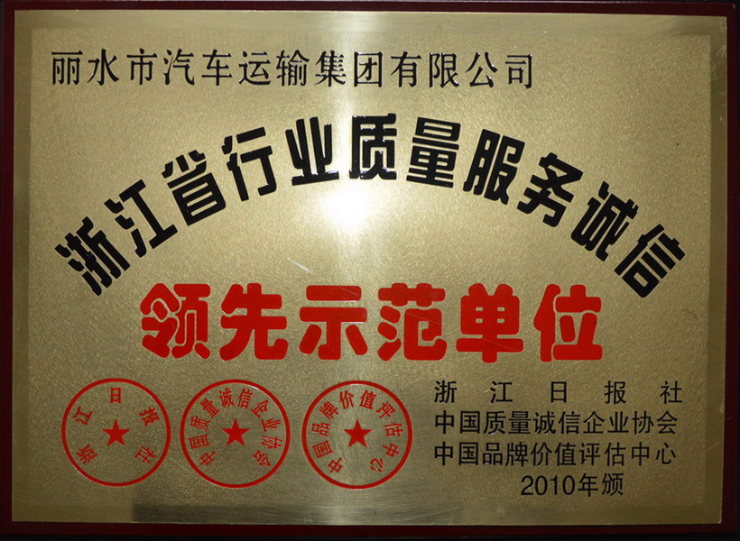 浙江省行業(yè)質(zhì)量服務(wù)誠(chéng)信領(lǐng)先示范單位