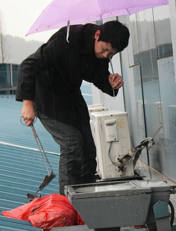原來,西站辦公大樓和售票大廳銜接的位置有一個(gè)排水溝,因售票大廳的樓層較矮,風(fēng)經(jīng)常會把周邊的落葉吹上屋頂,從而造成此處的排水溝排水不暢通。要是遇見雨天,如果不及時(shí)疏通,會導(dǎo)致積水滲漏到售票大廳。邱波是客運(yùn)西站的電工,疏通下水道本不是他份內(nèi)工作,但在他得知這一情況后,主動承擔(dān)起了這項(xiàng)工作,每逢下雨都會上屋頂查看排水情況。昨夜今晨的這一場大雨,又讓邱波惦記起這事來,他趕了個(gè)大早來到單位,忙完自己手頭的工作,就趕緊提著塑料袋、火鉗,打著雨傘爬到屋頂上,排水溝果然又被樹葉等雜物堵住了,邱波左手提著塑料袋,右手拿著火鉗,用脖子夾著雨傘,冒著大雨,困難的走在售票大廳濕滑傾斜的屋頂上,將水溝中的雜物一點(diǎn)一點(diǎn)夾出來,經(jīng)過一番努力,水溝終于干凈了,積水也順暢的排入了下水道,此時(shí)的邱波全身上下都已經(jīng)濕透了。