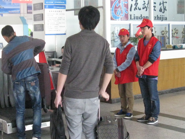4月29日,來自麗水學(xué)院的志愿者們頭戴小紅帽,身穿紅馬甲,活躍在麗水西站售票廳、候車廳等處,熱情的為旅客們指引方向、推送行李、行包安檢、助殘幫困,多樣化的服務(wù)給旅客們帶來了許多便利,受到了廣大旅客和車站工作人員的一致好評。