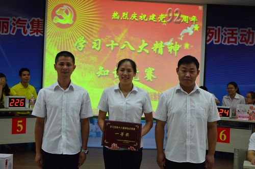本次學(xué)習(xí)十八大精神知識(shí)競(jìng)賽,共有來自集團(tuán)公司機(jī)關(guān)和下屬基層黨支部的10支代表隊(duì)參賽。經(jīng)過緊張激烈的角逐,客運(yùn)西站黨支部代表隊(duì)以238分獲得一等獎(jiǎng);機(jī)關(guān)黨支部代表隊(duì)和旅游集散中心黨支部代表隊(duì)獲得二等獎(jiǎng);南明物流黨支部代表隊(duì)、客運(yùn)東站黨支部代表隊(duì)和檢測(cè)站黨支部代表隊(duì)獲得三等獎(jiǎng),其他黨支部代表隊(duì)獲優(yōu)勝獎(jiǎng)。