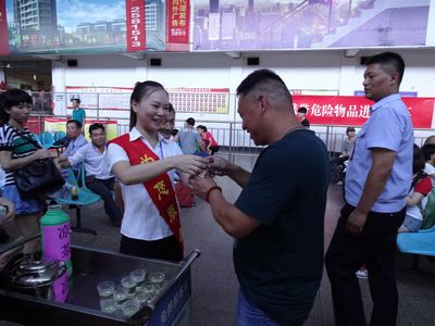 這幾天,麗水最高氣溫持續(xù)在39-40攝氏度之間,炎熱的太陽悶得讓人透不過氣。為做好防暑降溫工作,東站黨政領(lǐng)導(dǎo)結(jié)合實際,決定推出一項溫馨服務(wù):免費為旅客送涼茶。選用茶葉、白菊花、金銀花等原料精心泡制清涼解暑的涼茶,組織服務(wù)人員在東站候車室免費提供給來往的旅客和司乘人員,將絲絲涼意送到每一位出行旅客的心坎上。