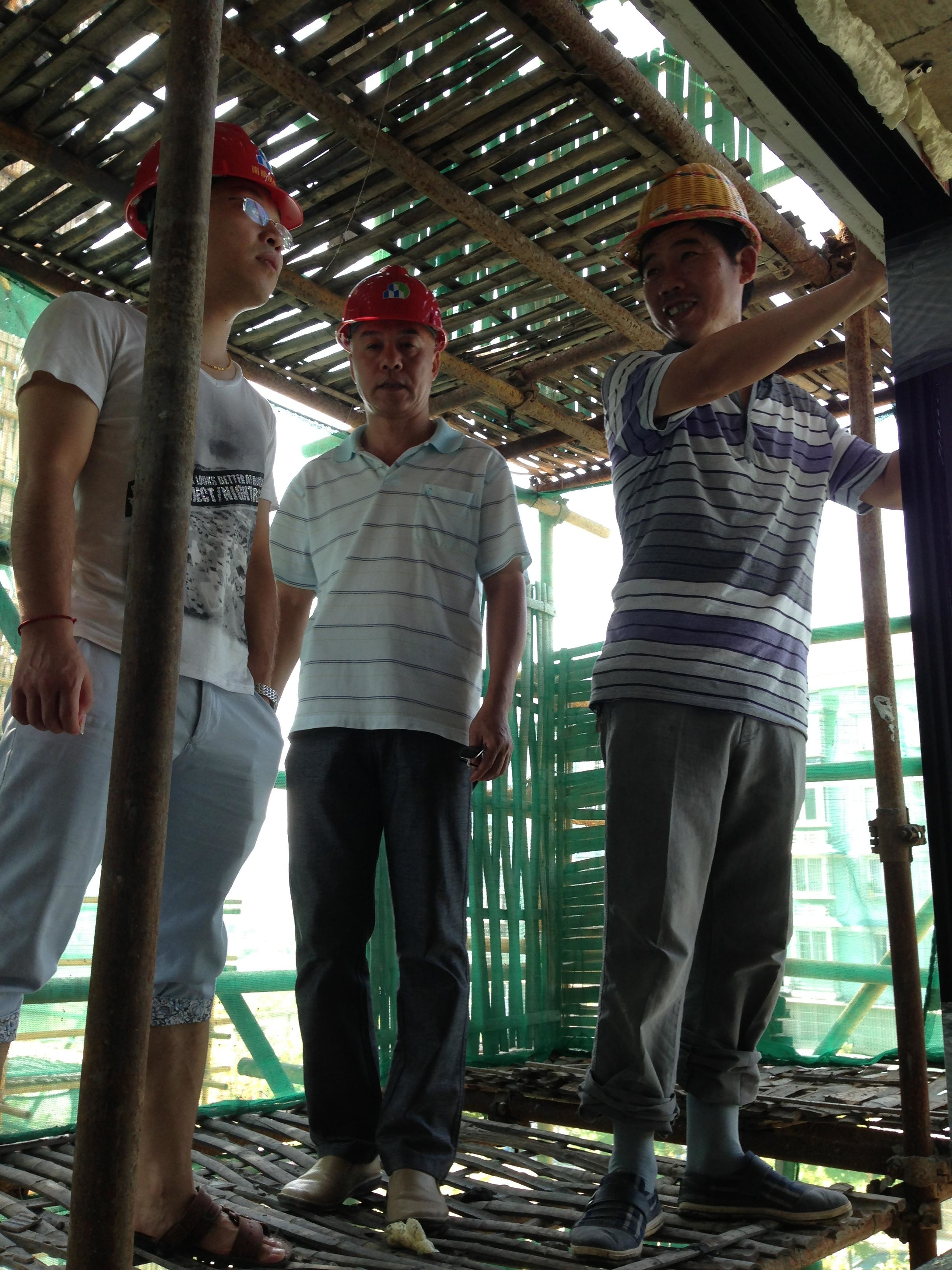 走進施工現(xiàn)場,大家沒有被高溫所嚇到,堅守在自己的崗位上,兢兢業(yè)業(yè)地完成著各項任務。看!工程部員工正深入工地現(xiàn)場了解情況:檢查鋁合金門窗安裝是否符合要求;對防火門材料進行記錄,對比質量是否達標;對施工所需的鋼筋、水泥等材料的檢驗以及重要部位和關健節(jié)點的施工,進行監(jiān)督管理。站在太陽底下,這痛苦的“桑拿天”讓員工們的衣服被汗水浸濕,嘴巴里就像有團火,手剛抹掉額頭的汗,馬上就會流出來,褲子上逐漸出現(xiàn)了“云彩”,原來那是汗?jié)n。為了工程項目能早日竣工交付使用,大家都沒有一句怨言,正以百分之二百的熱情投入這場“高溫持久仗”中。