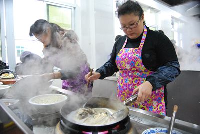 今年的女工廚藝大比拼一共吸引了集團公司各單位和離退委的12支隊伍參加,5人一組,5個女工在組里各司其職,分為洗菜、切菜、烹飪、輔助等崗位。按照規(guī)定,每組必須根據(jù)組委會提供的原材料,在規(guī)定的時間內(nèi),制作出14道菜。
