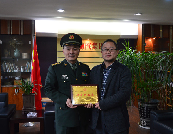 今年7月,集團公司董事長葉茂被省民政廳和省軍區(qū)政治部評為“擁軍企業(yè)家”。今天(23日)下午,麗水軍分區(qū)政治部主任張寶藏一行專程到集團公司,代表省民政廳和省軍區(qū)政治部向集團公司董事長葉茂送上“擁軍企業(yè)家”牌匾,并對麗汽集團積極安置退伍軍人、烈軍屬等工作表示感謝,對麗汽集團在軍事戰(zhàn)備工作上取得的成績表示肯定,并對麗汽集團今后的人民武裝常態(tài)化工作進行了探討。