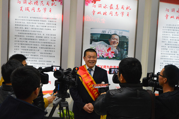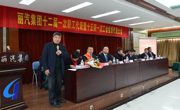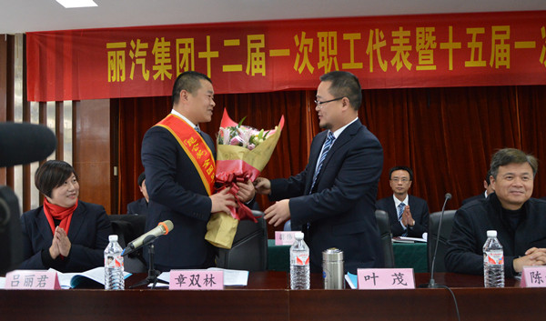 麗水市總工會黨組書記,常務(wù)副主席陳子民也發(fā)表了熱情洋溢的講話。陳子民說:“麗汽集團(tuán)一貫實(shí)施的強(qiáng)化員工素質(zhì)提升、民主管理、員工關(guān)愛、創(chuàng)新創(chuàng)效和黨群共建“五大工程”,有效培育了一支一流的員工隊伍和積極向上的企業(yè)文化。在麗汽集團(tuán)的最美創(chuàng)建活動中,先后涌現(xiàn)一大批先進(jìn)模范人物,有“最美司機(jī)”吳斌、“全國見義勇為英雄司機(jī)”章雙林,還有被市委書記王永康專門批示“向明霞同志表示敬意”的最美辦公室主任徐明霞等杰出代表。就在剛才,全國見義勇為英雄司機(jī)章雙林赴京表彰載譽(yù)歸來,馬上就向里東災(zāi)區(qū)捐出“全國見義勇為英雄司機(jī)”的獎金,讓我深受感動。這些先進(jìn)模范人物能在麗汽集團(tuán)不斷涌現(xiàn),決非是偶然。它一方面是因?yàn)辂惼瘓F(tuán)有著深厚的企業(yè)傳統(tǒng)文化,是一個充滿正能量的優(yōu)秀企業(yè);另一方面更是麗汽集團(tuán)長期注重企業(yè)文化培育的結(jié)果?!?br/> 在章雙林發(fā)言之前,麗汽集團(tuán)總經(jīng)理薛和有向大家報告了章雙林獲得“全國見義勇為英雄司機(jī)”和“中國好司機(jī)”并北京人民大會堂接受表彰的情況。麗汽集團(tuán)黨委書記、董事長葉茂代表集團(tuán)公司全體干部員工向章雙林獻(xiàn)花,歡迎英雄載譽(yù)歸來!