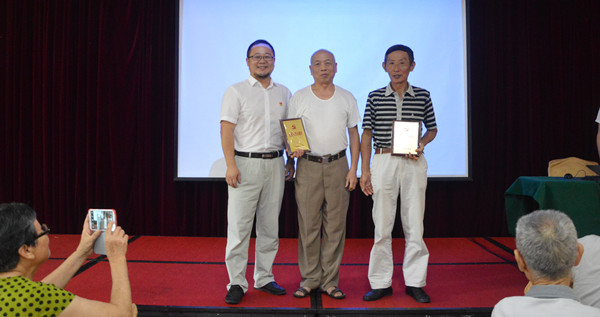 葉茂書記給徐時(shí)聽、曾樹生兩位黨員送上“光榮入黨五十周年”紀(jì)念牌