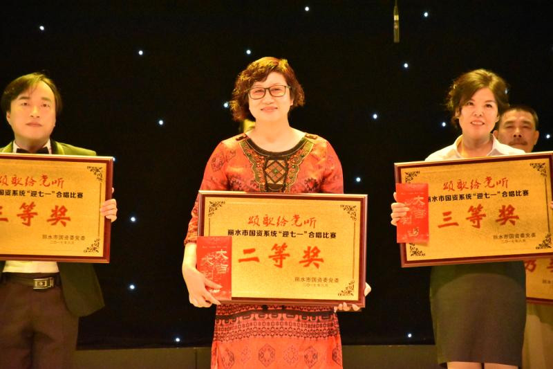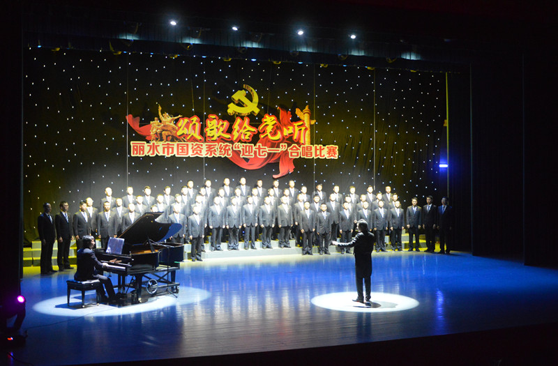“在我們麗水有著一家80多年歷史的道路運(yùn)輸企業(yè),她從一條羊腸小道、兩部舊車?yán)_(kāi)了我們秀山麗水的公路運(yùn)輸發(fā)展序幕,歷經(jīng)抗日戰(zhàn)爭(zhēng),解放戰(zhàn)爭(zhēng)到改革開(kāi)放的洗禮,她一路風(fēng)雨兼程,現(xiàn)如今,她成為了一個(gè)擁有旅游文化、汽車服務(wù)、道路運(yùn)輸、房地產(chǎn)四大產(chǎn)業(yè)板塊并趨的集團(tuán)企業(yè),從無(wú)到有,由弱到強(qiáng)。她始終在綠水青山就是金山銀山的幸福麗水大建設(shè)的康莊大道上拼搏創(chuàng)新,一路前行不息?!?br /> 6月29日晚的蓮城劇場(chǎng)里,麗水市國(guó)資系統(tǒng)組織了一場(chǎng)主題為“頌歌給黨聽(tīng)”的“迎七一”合唱比賽,在主持人的介紹后,麗汽集團(tuán)合唱團(tuán)以一曲激情高亢的《天路》征服了所有在場(chǎng)觀眾。演員們身著司服上場(chǎng),胸佩黨徽,個(gè)個(gè)精神飽滿。三個(gè)聲部韻律清晰,天籟般的嗓音、蕩氣回腸的演唱,仿佛讓大家置身于壯闊的雪域高原,博得了評(píng)委及現(xiàn)場(chǎng)觀眾的陣陣掌聲。