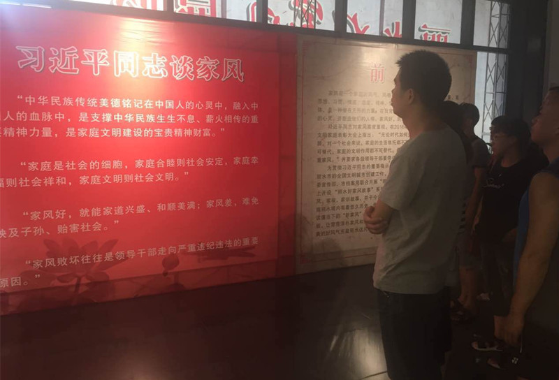 8月12日,東站黨支部組織黨員到市美術(shù)館參觀“麗水好家風(fēng)”展覽。通過對《先祖遺風(fēng)》、《傳世家風(fēng)》、《蔚然新風(fēng)》三大板塊的參觀學(xué)習(xí),黨員干部深深感受到古代先賢修身齊家的家國情懷、革命先輩言傳身教的崇高風(fēng)范、歷史名人恪守傳承的人生境界和普通百姓代代相傳的做人操守,深刻認識到黨員干部的家風(fēng)連著黨風(fēng)、政風(fēng),是黨的優(yōu)良作風(fēng)在家庭層面的延伸和體現(xiàn)。