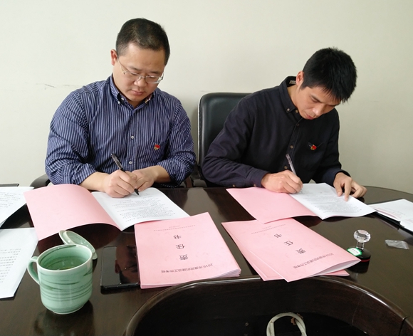 圖為集團公司黨委與黨辦及各黨支部簽訂《黨的建設(shè)工作考核責任書》