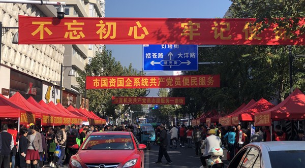 早上8點(diǎn)多,國(guó)資委下屬的20多家企業(yè)就在中山街南段設(shè)好攤點(diǎn),為市民群眾服務(wù)。