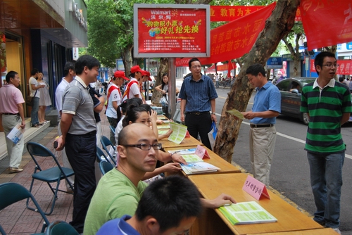 9月19日七時許,雖然麗水上空飄著毛毛細(xì)雨,但是這雨沒能擋住集團(tuán)公司黨員服務(wù)隊為民服務(wù)的熱情,一行20人在黨委副書記薛和有的帶領(lǐng)下,早早就在市區(qū)中山街鬧市區(qū)擺開了陣勢,參加市直機(jī)關(guān)黨工委組織的黨員一條街便民服務(wù)活動。
