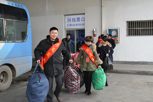 21日,隨著春節(jié)的日益臨近東、西站客流量明顯增多,兩站“春運(yùn)志愿者服務(wù)隊(duì)”今天正式拉開了服務(wù)序幕。上午9:00一個個志愿者服務(wù)隊(duì)員們身披彩帶,他們有的給旅客送熱姜茶、有的幫助旅客自助購票,有的引導(dǎo)旅客安檢,有的在售票廳維持秩序,有的穿梭于候車旅客中間服務(wù),“我來幫您提行李”,“大爺我攙扶您上車”,“出門要看管好行李”,一句句貼心的溫馨提示讓旅客們感到溫暖,一次次主動幫助給旅客們留下美好記憶,志愿服務(wù)給回家過年的旅客們鋪就了方便、安全、和諧的旅途。