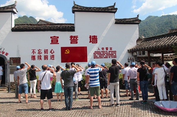 在有著“浙江井岡山”之稱的住龍鎮(zhèn),大家頂著火紅的驕陽(yáng)重走住溪村紅軍街、參加紅軍學(xué)校的學(xué)習(xí)、參觀了紅色文化廣場(chǎng)和浙江最早建立的一個(gè)縣級(jí)蘇維埃政府,回顧了粟裕、劉英率領(lǐng)的中國(guó)工農(nóng)紅軍挺進(jìn)師開創(chuàng)浙西南革命根據(jù)地的紅色歷史。參加活動(dòng)的黨員還在宣誓墻前莊嚴(yán)地舉手宣誓,再一次重溫入黨誓詞,接受了一次黨性洗禮。