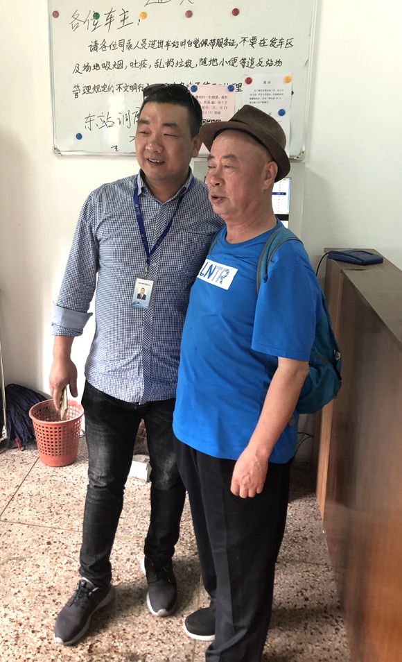 十分鐘后,失主趕到東站調(diào)度室時(shí),正好碰到了準(zhǔn)備發(fā)車(chē)的錢(qián)偉君師傅,失主王先生一臉感激,連聲向錢(qián)師傅道謝并且從錢(qián)包里抽出了現(xiàn)金表示要感謝錢(qián)師傅,被錢(qián)師傅婉言謝絕了。最后王先生堅(jiān)持要和錢(qián)師傅合影留念,并熱心地邀請(qǐng)錢(qián)師傅抽空一定去北京玩。因?yàn)橥跸壬s下午4時(shí)的高鐵,錢(qián)偉君師傅的班車(chē)也馬上要出發(fā),他們彼此互留了微信后,就握手道別了。