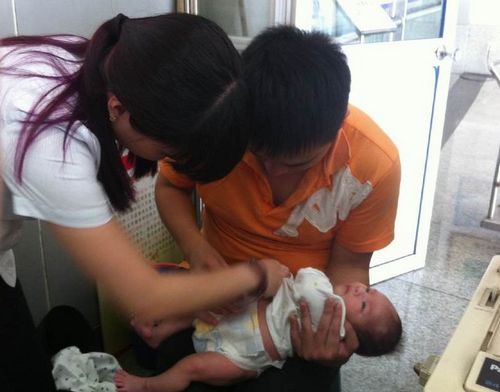 恰在這時,一名年輕的“奶爸”旅客左手拉著一個行李箱,背后背著一個大包,右手還抱著一個尚在襁褓中嚶嚶哭泣的小嬰兒,滿頭大汗的來到服務(wù)臺前,小寶寶可能肚子餓了,一直在哭泣,小寶寶的媽媽又沒有隨行,只有爸爸一個人對付小家伙,實在是沒轍了,只得到服務(wù)臺求助。